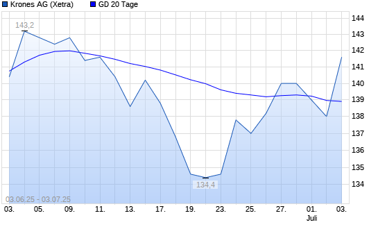 Mit dem Anstieg auf 139,00 EUR hat die Krones-Aktie am 02.07.2025 die 20-Tage-Linie nach oben gekreuzt.
