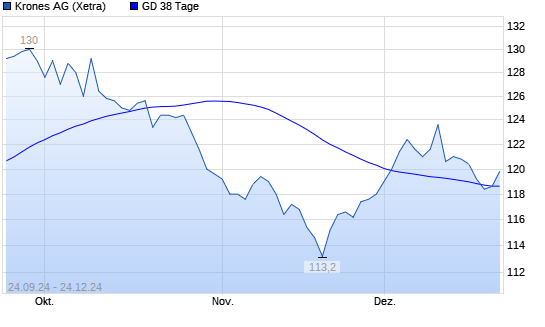 Mit dem Anstieg auf 118,80 EUR hat die Krones-Aktie am 23.12.2024 die 38-Tage-Linie nach oben gekreuzt.