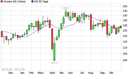 Mit dem Rücksetzer auf 128,00 EUR hat die Krones-Aktie am 27.10.2025 die 50-Tage-Linie nach unten gekreuzt.