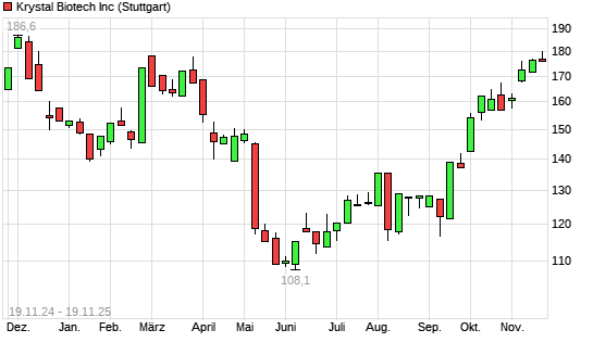 Mit dem Anstieg auf 180,05 EUR hat die Krystal Biotech-Aktie (ISIN US5011471027) am 18.11.2025 ein neues 6-Monats-Hoch erreicht und damit den Kurs vom 17.11.2025 eingestellt.