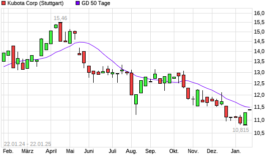 Mit dem Anstieg auf 11,67 EUR hat die Kubota-Aktie am 21.01.2025 die 50-Tage-Linie nach oben gekreuzt.