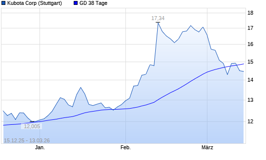 Mit dem Rücksetzer auf 14,60 EUR hat die Kubota-Aktie am 12.03.2026 die 38-Tage-Linie nach unten gekreuzt.