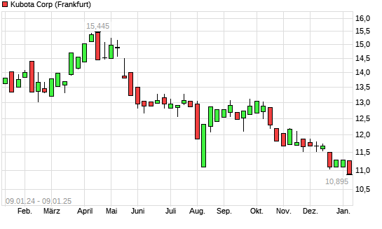 Mit dem Rücksetzer auf 11,06 EUR hat die Kubota-Aktie (ISIN JP3266400005) am 08.01.2025 ein neues 3-Jahres-Tief erreicht und damit den Kurs vom 20.12.2024 eingestellt.Die Kubota-Aktie befindet ...weiterlesen
