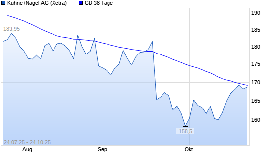 Mit dem Anstieg auf 166,90 EUR hat die Kühne + Nagel-Aktie am 23.10.2025 die 38-Tage-Linie nach oben gekreuzt.