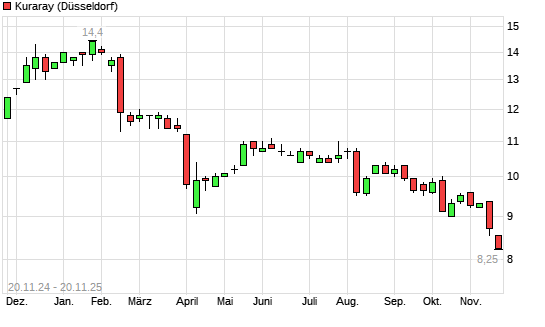 Mit dem Rücksetzer auf 8,40 EUR hat die Kuraray-Aktie (ISIN JP3269600007) am 19.11.2025 ein neues 12-Monats-Tief erreicht und damit den Kurs vom 18.11.2025 eingestellt.