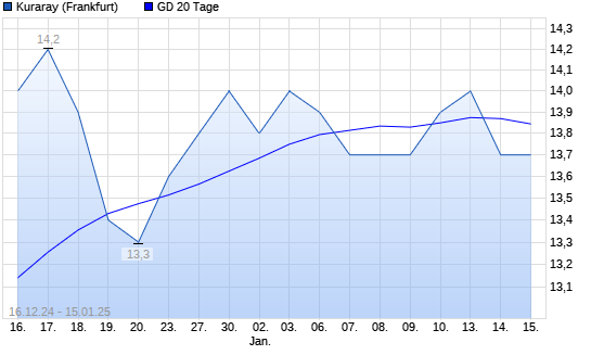 Mit dem Rücksetzer auf 13,70 EUR hat die Kuraray-Aktie am 14.01.2025 die 20-Tage-Linie nach unten gekreuzt.