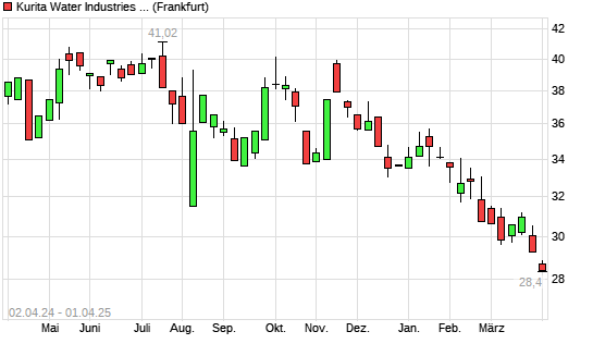 Mit dem Rücksetzer auf 28,48 EUR hat die Kurita Water Industries-Aktie (ISIN JP3270000007) am 31.03.2025 ein neues 12-Monats-Tief erreicht und damit den Kurs vom 28.03.2025 eingestellt.