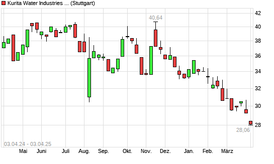 Mit dem Rücksetzer auf 28,12 EUR hat die Kurita Water Industries-Aktie (ISIN JP3270000007) am 02.04.2025 ein neues 12-Monats-Tief erreicht und damit den Kurs vom 01.04.2025 eingestellt.