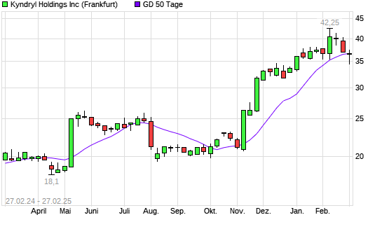 Mit dem Anstieg auf 36,72 EUR hat die Kyndryl Holdings-Aktie am 26.02.2025 die 50-Tage-Linie nach oben gekreuzt.
