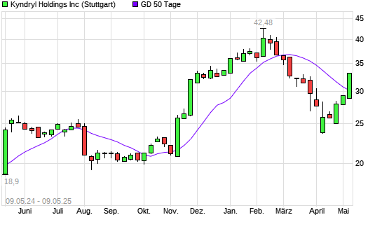 Mit dem Anstieg auf 32,00 EUR hat die Kyndryl Holdings-Aktie am 08.05.2025 die 50-Tage-Linie nach oben gekreuzt.