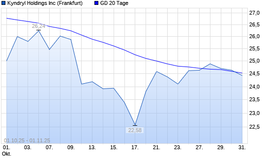 Mit dem Rücksetzer auf 24,43 EUR hat die Kyndryl Holdings-Aktie am 31.10.2025 die 20-Tage-Linie nach unten gekreuzt.