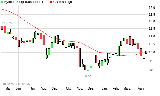Mit dem Anstieg auf 9,91 EUR hat die Kyocera-Aktie am 17.04.2025 die 100-Tage-Linie nach oben gekreuzt.