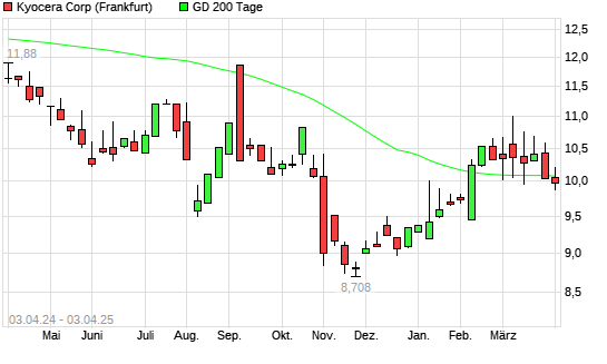 Mit dem Anstieg auf 10,20 EUR hat die Kyocera-Aktie am 02.04.2025 die 200-Tage-Linie nach oben gekreuzt.