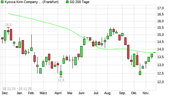 Mit dem Anstieg auf 13,80 EUR hat die Kyowa Hakko Kirin-Aktie am 17.11.2025 die 200-Tage-Linie nach oben gekreuzt.