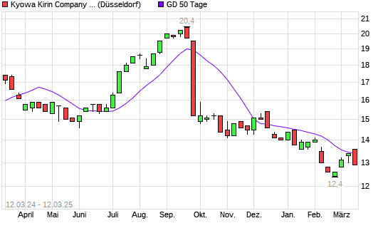 Mit dem Rücksetzer auf 13,20 EUR hat die Kyowa Hakko Kirin-Aktie am 11.03.2025 die 50-Tage-Linie nach unten gekreuzt.