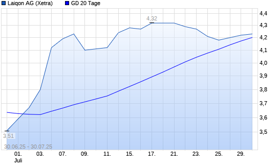 Mit dem Rücksetzer auf 4,13 EUR hat die LAIQON (ex Lloyd Fonds)-Aktie am 29.07.2025 die 20-Tage-Linie nach unten gekreuzt.