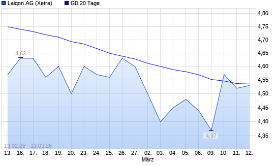 Mit dem Rücksetzer auf 4,42 EUR hat die LAIQON (ex Lloyd Fonds)-Aktie am 12.03.2026 die 20-Tage-Linie nach unten gekreuzt.