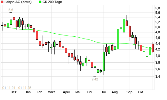 Mit dem Rücksetzer auf 4,08 EUR hat die LAIQON (ex Lloyd Fonds)-Aktie am 31.10.2025 die 200-Tage-Linie nach unten gekreuzt.