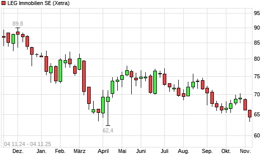 Mit dem Rücksetzer auf 64,45 EUR hat die LEG Immobilien-Aktie (ISIN DE000LEG1110) am 03.11.2025 ein neues 6-Monats-Tief erreicht und damit den Kurs vom 25.09.2025 eingestellt.