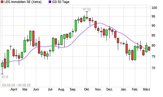 Mit dem Rücksetzer auf 77,50 EUR hat die LEG Immobilien-Aktie am 03.03.2025 die 50-Tage-Linie nach unten gekreuzt.