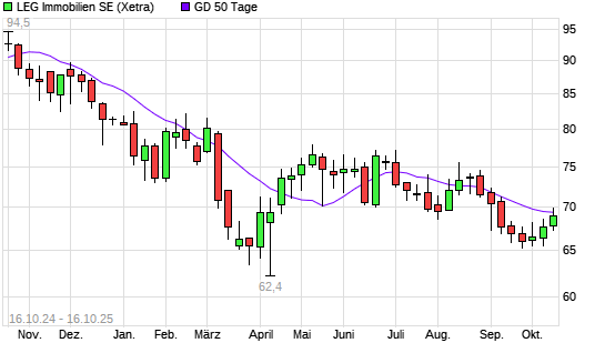 Mit dem Rücksetzer auf 68,60 EUR hat die LEG Immobilien-Aktie am 15.10.2025 die 50-Tage-Linie nach unten gekreuzt.