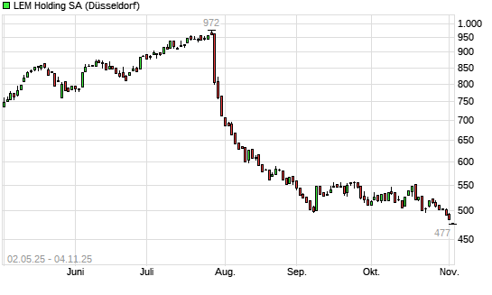 Mit dem Rücksetzer auf 494,50 EUR hat die LEM Holding SA-Aktie (ISIN CH0022427626) am 03.11.2025 ein neues 10-Jahres-Tief erreicht und damit den Kurs vom 23.10.2025 eingestellt.