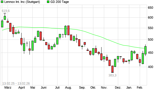 Mit dem Anstieg auf 467,60 EUR hat die LENNOX International-Aktie am 12.02.2026 die 200-Tage-Linie nach oben gekreuzt.