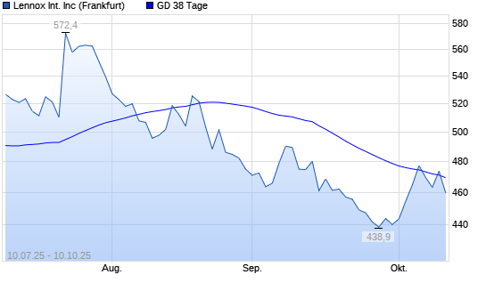 Mit dem Anstieg auf 473,80 EUR hat die LENNOX International-Aktie am 09.10.2025 die 38-Tage-Linie nach oben gekreuzt.