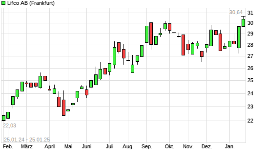 Mit dem Anstieg auf 30,58 EUR hat die LIFCO AB B-Aktie (ISIN SE0015949201) am 24.01.2025 ein neues All-Time-High erreicht und damit den Kurs vom 26.09.2024 eingestellt.