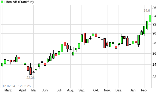 Mit dem Anstieg auf 33,56 EUR hat die LIFCO AB B-Aktie (ISIN SE0015949201) am 11.02.2025 ein neues All-Time-High erreicht und damit den Kurs vom 07.02.2025 eingestellt.