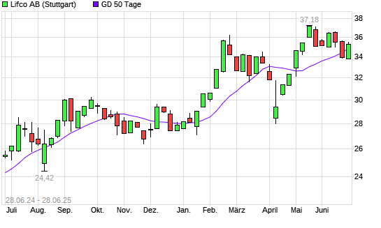Mit dem Rücksetzer auf 34,70 EUR hat die LIFCO AB B-Aktie am 27.06.2025 die 50-Tage-Linie nach unten gekreuzt.
