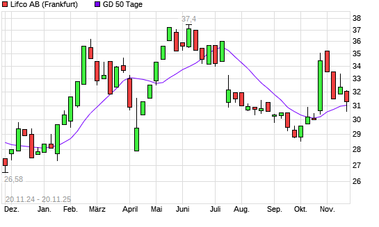 Mit dem Rücksetzer auf 30,58 EUR hat die LIFCO AB B-Aktie am 19.11.2025 die 50-Tage-Linie nach unten gekreuzt.