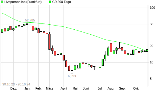 Mit dem Anstieg auf 1,09 EUR hat die LIVEPERSON-Aktie am 29.10.2024 die 200-Tage-Linie nach oben gekreuzt.
