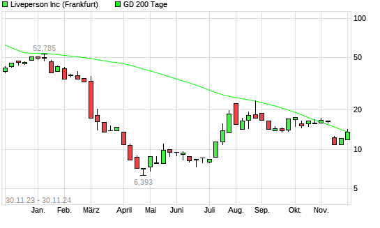 Mit dem Anstieg auf 0,90 EUR hat die LIVEPERSON-Aktie am 29.11.2024 die 200-Tage-Linie nach oben gekreuzt.