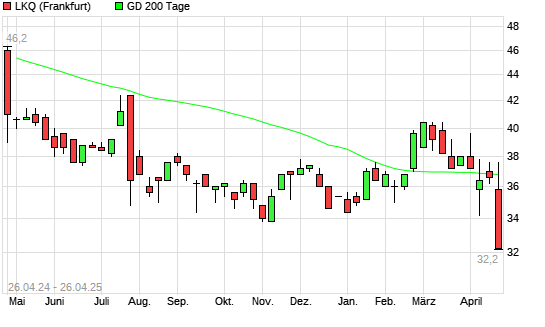 Mit dem Rücksetzer auf 32,20 EUR hat die LKQ-Aktie am 25.04.2025 die 200-Tage-Linie nach unten gekreuzt.