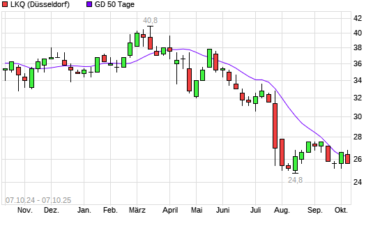 Mit dem Rücksetzer auf 26,20 EUR hat die LKQ-Aktie am 06.10.2025 die 50-Tage-Linie nach unten gekreuzt.