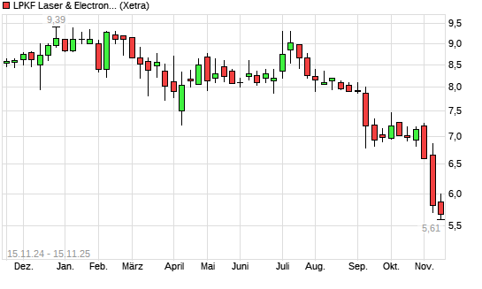 Mit dem Rücksetzer auf 5,64 EUR hat die LPKF Laser-Aktie (ISIN DE0006450000) am 14.11.2025 ein neues 5-Jahres-Tief erreicht und damit den Kurs vom 13.11.2025 eingestellt.