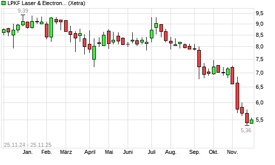 Mit dem Rücksetzer auf 5,44 EUR hat die LPKF Laser-Aktie (ISIN DE0006450000) am 24.11.2025 ein neues 5-Jahres-Tief erreicht und damit den Kurs vom 21.11.2025 eingestellt.