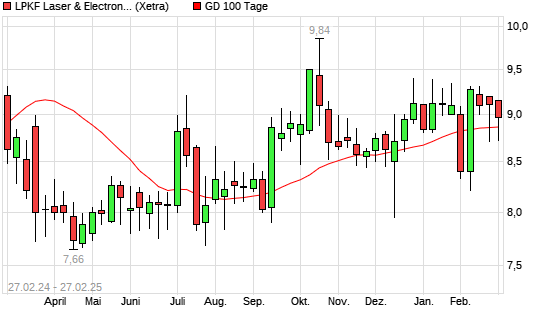 Mit dem Anstieg auf 9,01 EUR hat die LPKF Laser-Aktie am 26.02.2025 die 100-Tage-Linie nach oben gekreuzt.
