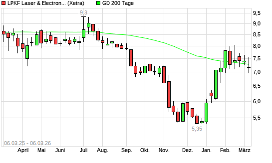 Mit dem Anstieg auf 7,49 EUR hat die LPKF Laser-Aktie am 05.03.2026 die 200-Tage-Linie nach oben gekreuzt.