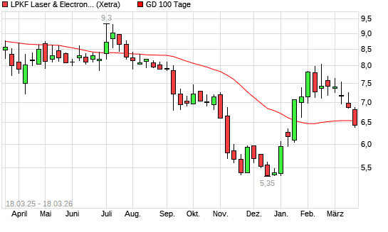 Mit dem Rücksetzer auf 6,42 EUR hat die LPKF Laser-Aktie am 17.03.2026 die 100-Tage-Linie nach unten gekreuzt.