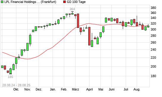 Mit dem Anstieg auf 312,00 EUR hat die LPL FINANCIAL HLDS-Aktie am 27.08.2025 die 100-Tage-Linie nach oben gekreuzt.