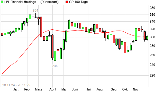 Mit dem Anstieg auf 302,00 EUR hat die LPL FINANCIAL HLDS-Aktie am 27.11.2025 die 100-Tage-Linie nach oben gekreuzt.