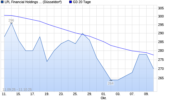 Mit dem Anstieg auf 280,00 EUR hat die LPL FINANCIAL HLDS-Aktie am 10.10.2025 die 20-Tage-Linie nach oben gekreuzt.
