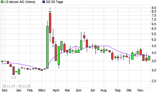 Mit dem Rücksetzer auf 3,48 EUR hat die LS telcom-Aktie am 17.11.2025 die 50-Tage-Linie nach unten gekreuzt.