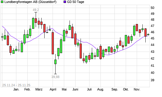Mit dem Anstieg auf 45,38 EUR hat die LUNDBERGF. B FRIA-Aktie am 24.11.2025 die 50-Tage-Linie nach oben gekreuzt.