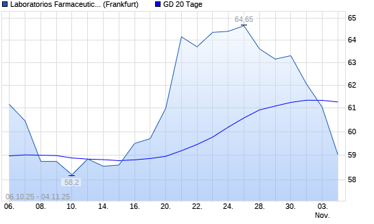 Mit dem Rücksetzer auf 61,05 EUR hat die Laboratorios Farmaceut.-Aktie am 03.11.2025 die 20-Tage-Linie nach unten gekreuzt.