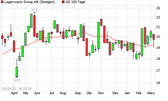 Mit dem Rücksetzer auf 19,00 EUR hat die Lagercrantz Group-Aktie am 04.03.2026 die 100-Tage-Linie nach unten gekreuzt.