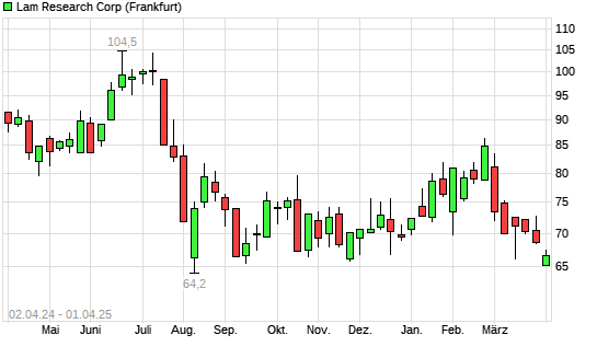 Mit dem Rücksetzer auf 65,50 EUR hat die Lam Research-Aktie (ISIN US5128073062) am 31.03.2025 ein neues 12-Monats-Tief erreicht und damit den Kurs vom 10.09.2024 eingestellt.