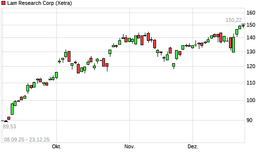 Mit dem Anstieg auf 148,92 EUR hat die Lam Research-Aktie (ISIN US5128073062) am 22.12.2025 ein neues All-Time-High erreicht und damit den Kurs vom 19.12.2025 eingestellt.